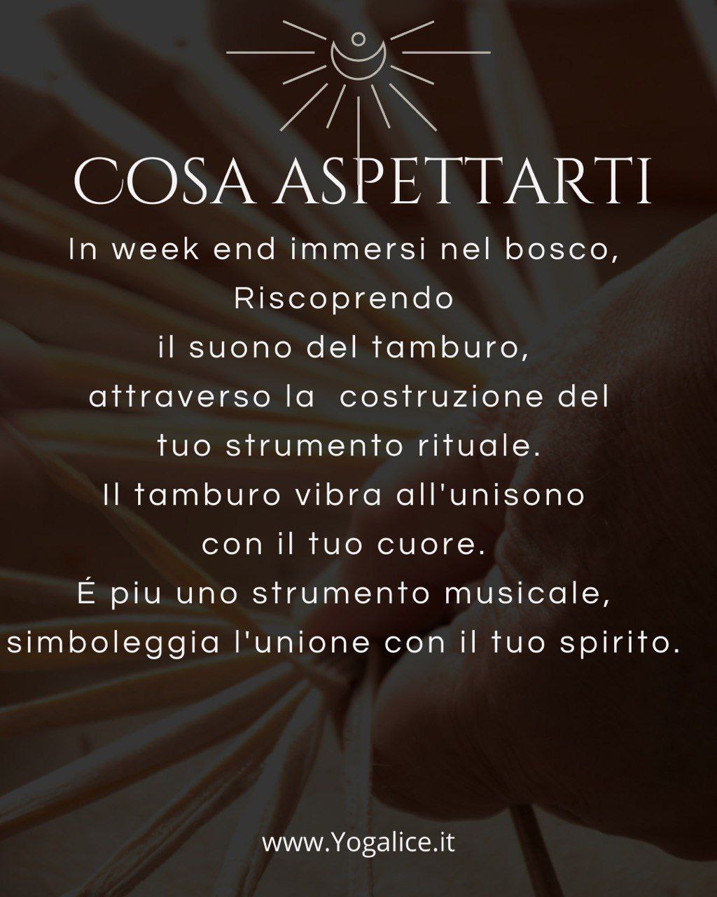 Durante il week end saremo immersi nella natura, lavorando passo dopo passo alla costruzione del tuo tamburo sciamanico: dalla scelta e preparazione delle pelli, al montaggio sul cerchio, fino alla creazione del batacchio personalizzato con i tuoi amuleti.
